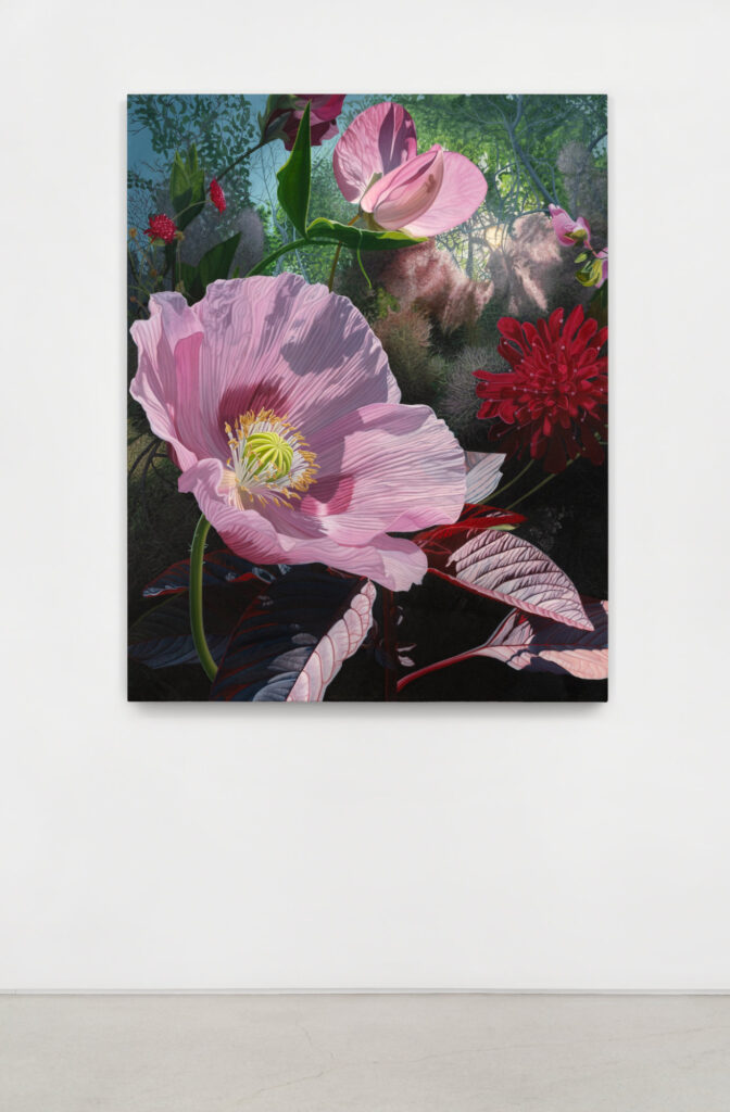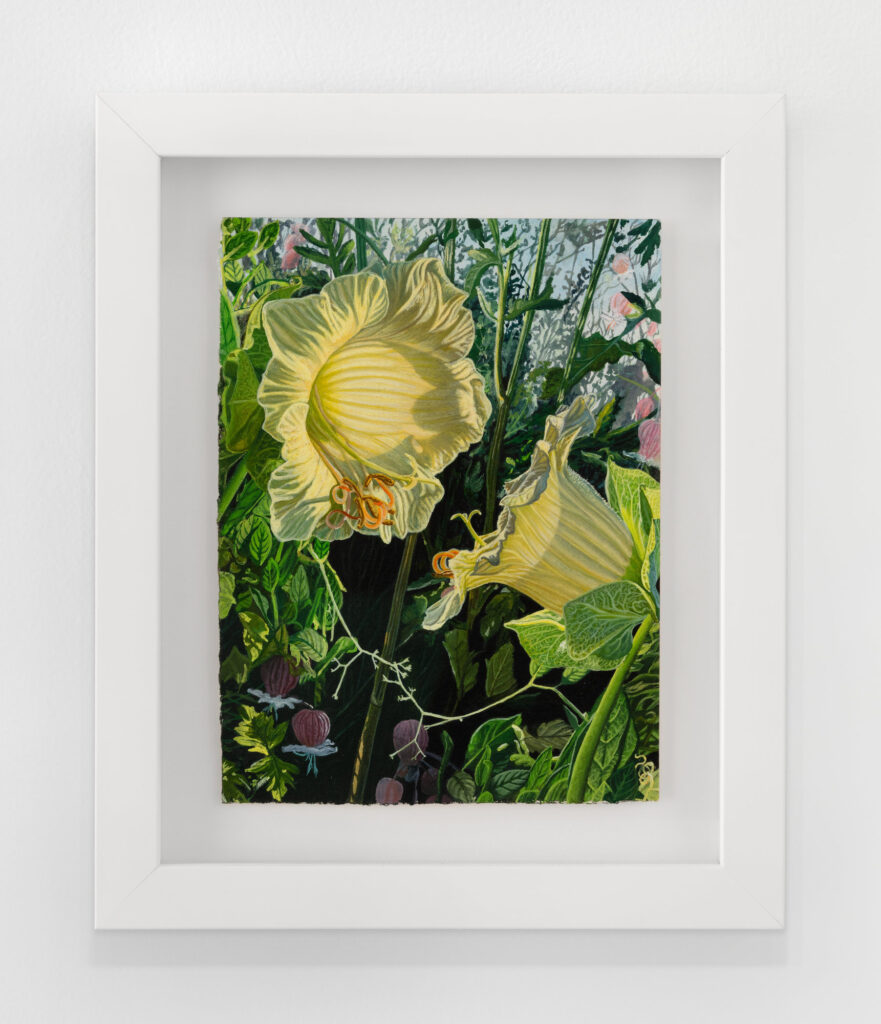 Andrew Reed Gallery is excited to announce Holding Time, a two-part solo exhibition featuring large-scale paintings, watercolors, and an immersive floral diorama by Maine-based artist Kate Bickmore. Holding Time explores plants as vessels of healing across different scales of time: from the intimate plants which the artist lives alongside in Maine (Part I), to the ancient, endemic species of Socotra (Part II). Moving between near and far, the work mirrors Bickmore’s own process of healing as something that unfolds across places and years.